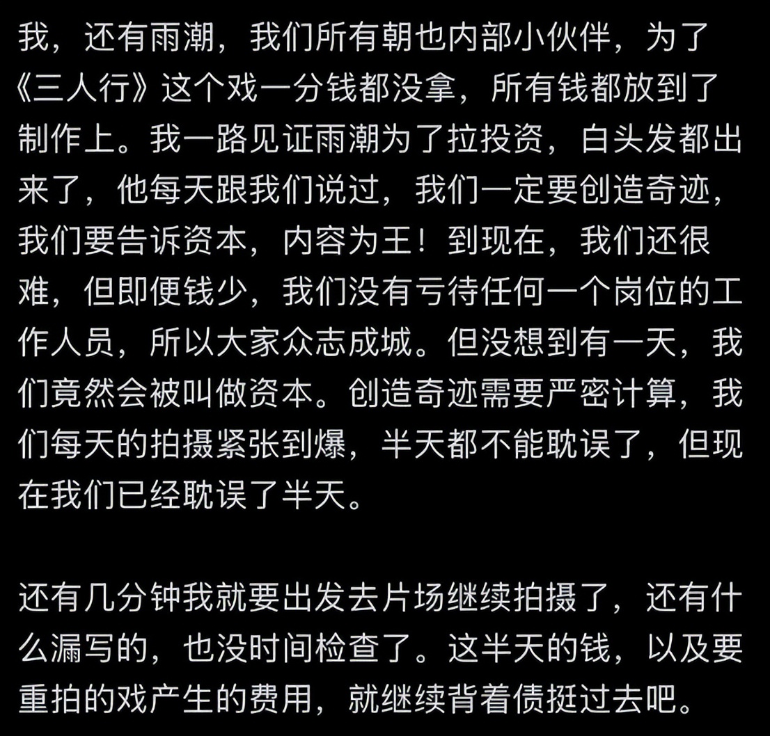 随后,编剧、导演鹤唳云端发文澄清,并写下了一句“我们要告诉资本,内容为王”的豪言壮语,试图以创作本心,对抗外界纷扰的杂音和平台主导下的长剧生产规则。