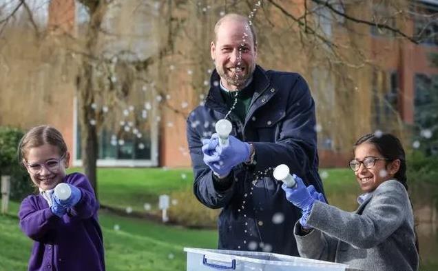此外,王子最近还独自造访了自然度量学(NatureMetrics),这是一家入围“地球大奖”(Earthshot Prize)决赛的企业。在这次活动中,威廉王子和当地小学生一起使用注射器从池塘水中提取DNA样本,现场气氛轻松愉快,甚至演变成了一场趣味横生的“水枪大战”。这一幕不仅展现了他对环境保护的关注,也让外界看到了他幽默风趣的一面。