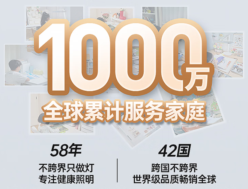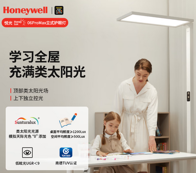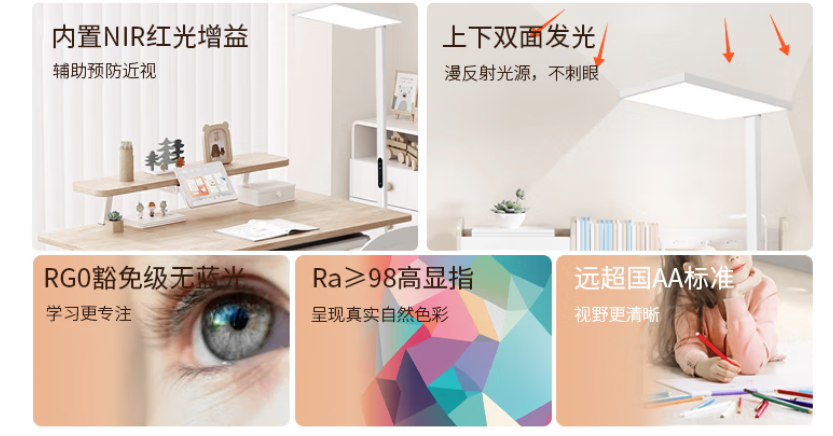 桌面平均照度1600lux,全屋空间平均照度>500lux;