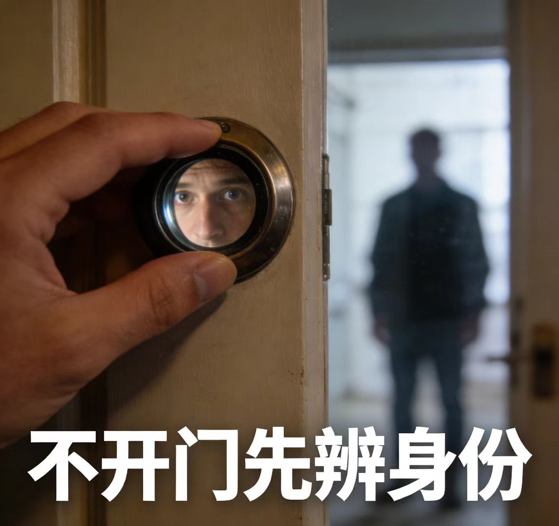 一、严守敲门“三不问三不开”,第一道防线绝不能破陌生人敲门,不管对方说得多天花乱坠,先做到这几点: