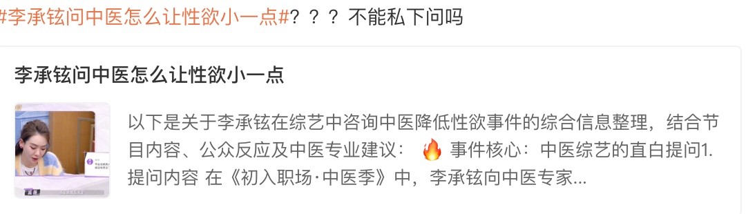 况且如果真的在这方面有困扰,私下问医生其实更好,在节目上一脸单纯地说出来,反而显得刻意。