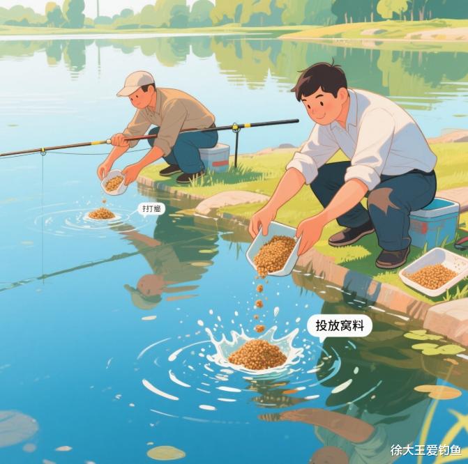 正确:沿三角窝点外围 1 米处扇形撒播(如主窝补料时,向副窝、虚窝方向撒20%),实测惊鱼概率下降70%。