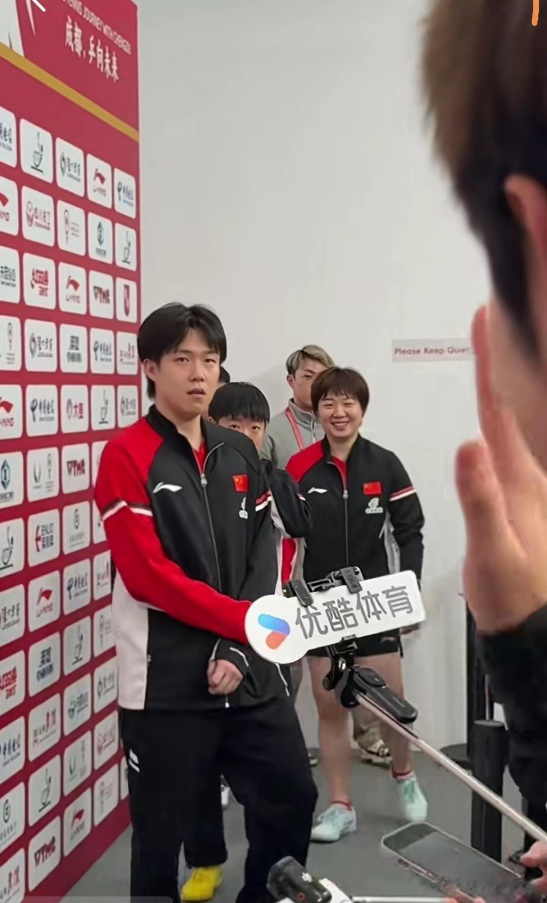 在前面的采访结束后,王楚钦带着他们三个往前走,不愧是天选混双,这走路的步伐也一样啊,俩人都是背着手就过来了,像是在公园遛弯一样。