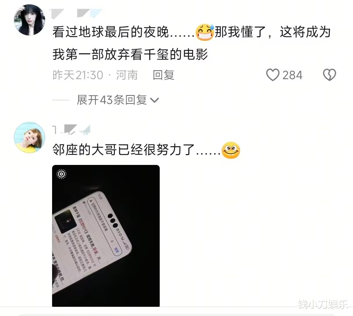 有网友说,看电影像在渡劫,不知道拍的什么玩意,电影院的人全跑了。