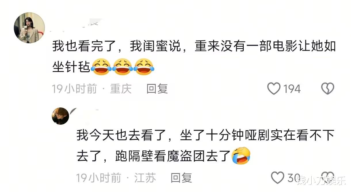 有人说看完了,从来没有一部电影让她如此如坐针毡。还有人看了10分钟看不下去了,跑去隔壁看魔盗团去了。