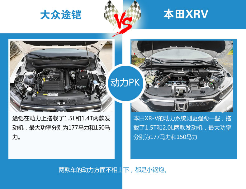 途铠和本田XR-V的动力表现都十分出色。途铠在动力上搭载了1.5L和1.4T两款发动机,最大功率分别为177马力和150马力。