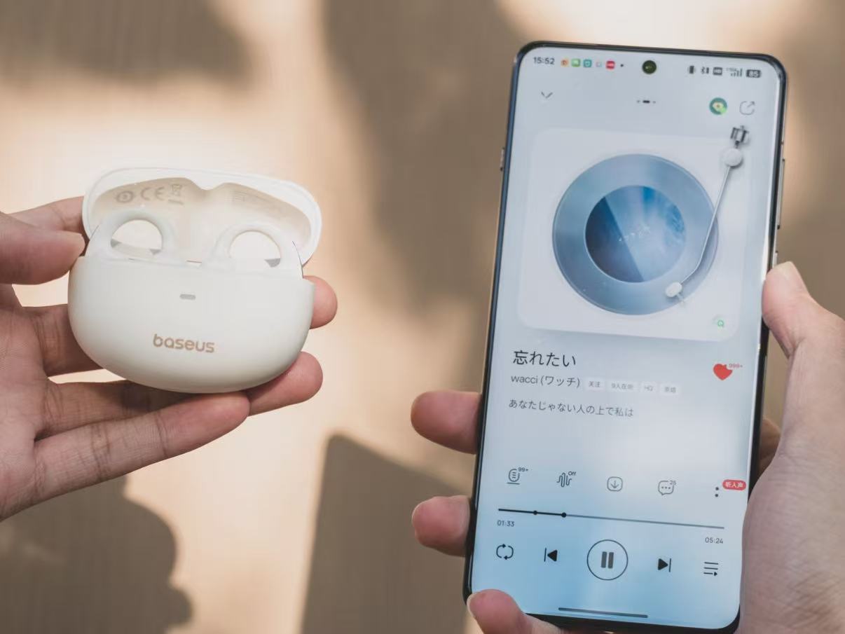 本款绿联S5耳夹开放式耳机单只重量仅5.6g,采用U型耳扣式耳夹设计,搭配记忆钛合金丝,弯折不易断,佩戴时轻盈无负担,摇头、运动也能牢牢固定。搭载12mm超大动圈发声单元,低音扎实不轰头,中高频清澈明亮,配合器传动到定向传音,兼顾音质与环境感知安全性。此外,支持Bluetooth v5.4协议,连接快速稳定,切换设备无延迟,具备IPX5级防水防汗性能,日常出汗、小雨天气均可使用,综合续航可达6+24小时,配备指向性麦克风DNN降噪技术,通话人声清晰突出