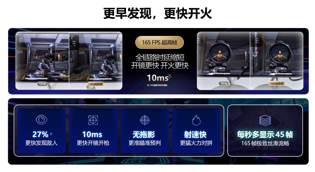 联运的核心是“留客”,OPPO从玩家游戏全流程入手,用技术升级打造不可替代的娱乐体验,为联运游戏沉淀高粘性用户。例如将目前的主流游戏产品实现【165帧超高帧体验】,显示速度提升27%,全链路延迟降低20%,玩家能在《和平精英》等游戏中畅享丝滑对战。