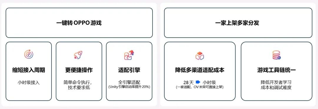 在降低开发门槛上,OPPO推出“微信小游戏一键转换”能力——开发者不用重新写代码,小时级就能完成接入,还支持全引擎适配,相当于把“二次开发”的成本砍掉了一半还多。有团队原本要花1个月适配OPPO小游戏,用了这个功能后,3天就上线了,负责人说“省下的时间能多做3个玩法迭代”。