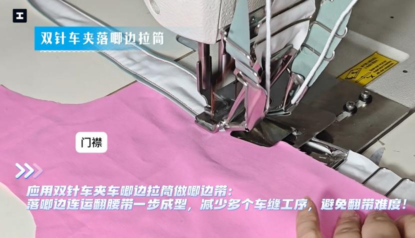 “在女装上搭配的腰带,传统的做法需要分三道工序,还需要手工翻带,SHEIN现在研发出的新工具,把三道工序合并为一道了,效率能提升将近60%。”从女装到泳衣,多个涉及复杂工艺的供应商正持续受益于SHEIN研发的精益工具,提升差异化竞争力和产品附加值。例如,在泳衣脚口的包胶带、抹胸的领圈或者后背的透明条等比较复杂的缝制场景中,传统的做法要分两道工序来完成:先用四线打边车将橡筋缝到面料上,然后把橡筋的部位手工内折至,再使用冚车压双线来固定橡筋。而SHEIN去年上新的“冚车落橡筋压双线一次过”工具套件,将这两道工序合二为一,效率提升25%,并提升了产品品质。