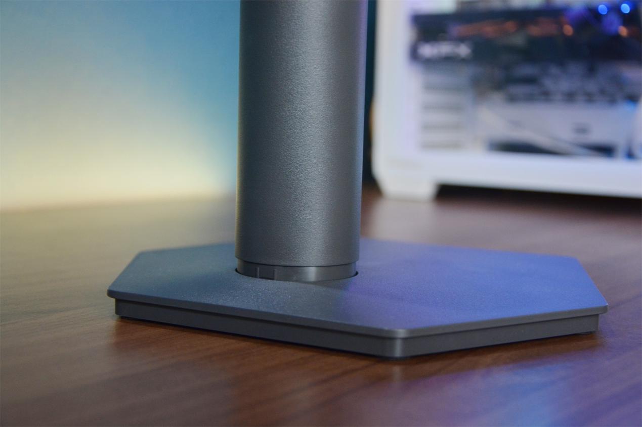 新模具上,机身底座优化成了一个正六边形设计,放在桌面上众向占地只有199mm,非常的节省桌面空间。这样学生宿舍或者小书桌也能轻易放下。略有遗憾的是,支架采用了固定式设计,仅支持俯仰角度调节。可以搭配增高支架或者机械臂使用。