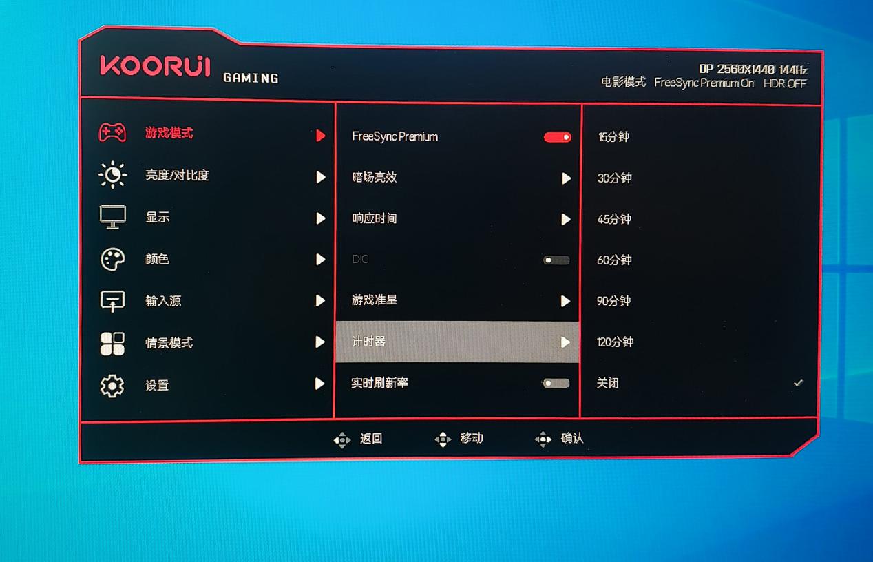 在别的游戏辅助功能上,科睿X7Pro还支持游戏准星、暗场亮效、游戏计时、FreeSync。其中游戏计时应该很多老玩家都比较喜欢,在游戏中也用的比较多。然后,还增加了一个自定义功能,我们可以自己预设,一键直达。