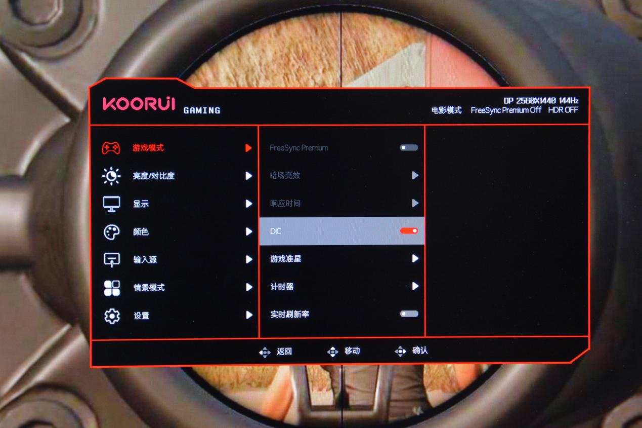 科睿X7Pro在游戏上,我们可以一键打开DIC功能,这个是惠科自研技术,打开后可以减少拖影,进一步提升画面的清晰。主要是通过插入黑帧的方式对消除运动模糊和拖影,从而提高图像的清晰度。游戏实际体验时,打开DIC技术后,在FPS射击游戏快速移动中,周围建筑和敌人的轮廓拖影显著减少,更容易锁定目标。