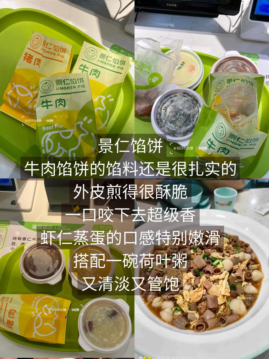 牛肉馅饼的馅料还是很扎实的,外皮煎得很酥脆,一口咬下去超级香!虾仁蒸蛋的口感特别嫩滑,搭配一碗荷叶粥,又清淡又管饱。