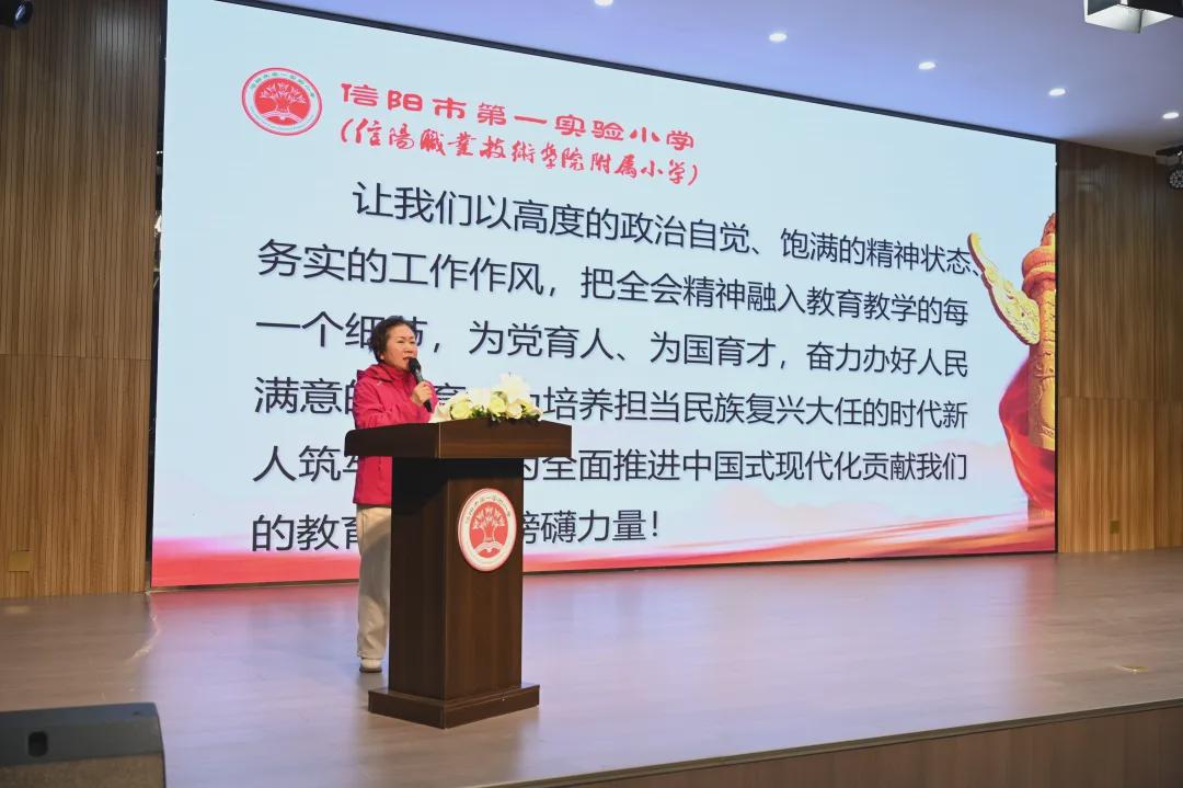 12月26日,信阳市第一实验小学举行“深入学习贯彻党的二十届四中全会精神”专题学习活动,全体教职工参加。学校党总支书记高琼同志以“深学全会精神 坚定育人使命——争做新时代人民满意的好老师”为题做专题讲授,引领大家深刻领会全会重大意义,把握时代要求,明确育人方向。