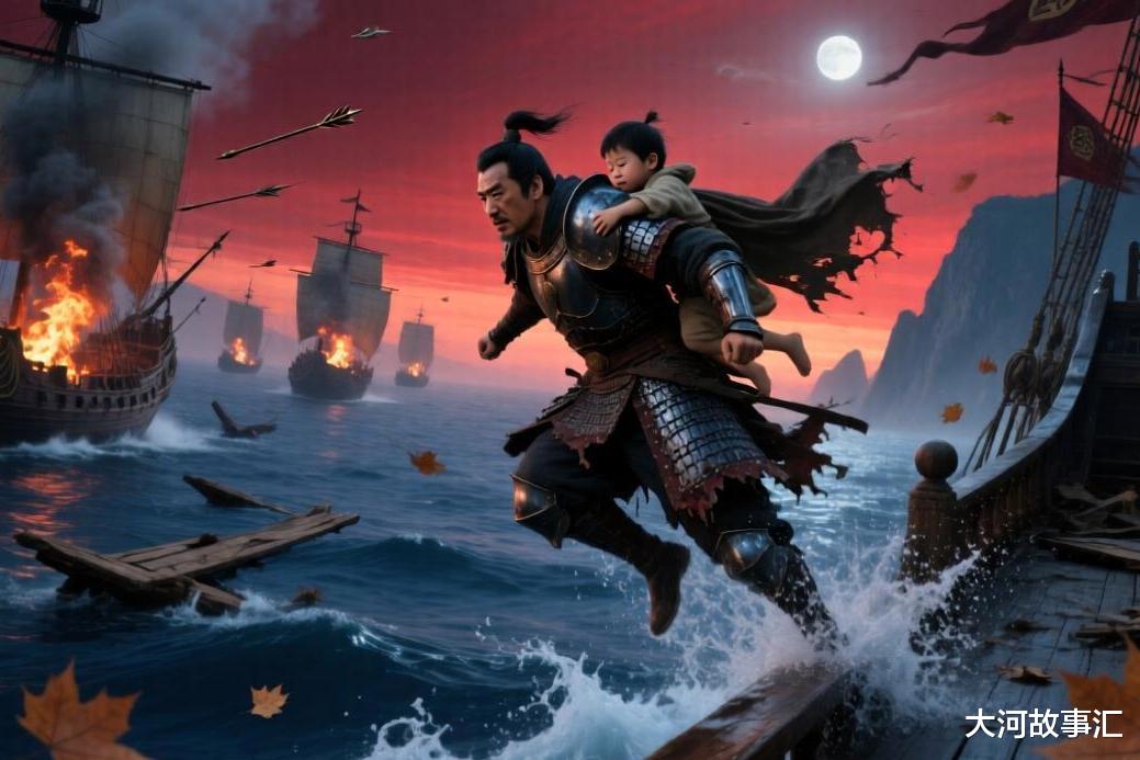 陆秀夫抱起孩子,走出舱室。甲板上已经能看到元军船只逼近,箭矢如蝗飞来。亲兵们举起盾牌护卫,但不断有人中箭倒下。