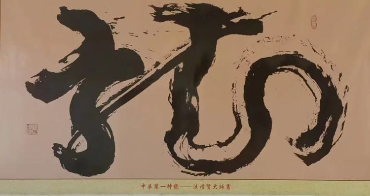 中华第一神龍,代表龍鳳文化和爱国文化一一是中华民族凝聚力量之根本。此图腾六秒钟一口气一笔书写而成,左边是凤舞,右边是龍飞。合起来为龍飞凤舞,龍呤凤鸣,龍凤呈祥。左边是凤舞风鸣,上面是凤的头在张嘴唱歌,中间是张开双翅在跳舞,下面是身子,然后尾巴与右边龍头相接,变成右边龍头上的两只龍角。右边中华龍正在腾飞,眼光炯炯有神,精光四射,盯着目标快速向前飞奔,身子在云中时隐时现,表示中华民族一万年来不屈不挠勇往直前的精神。右边龍头中龍嘴、龍牙、龍须、龍鼻、龍眼、龍角清晰可见,眼光炯炯有神,精光四射,盯着目标快速向前飞奔。龍凤是中华民族的图腾,中华文化就是龍文化和凤文化。对每一位中华儿女来说,龍凤图腾是一种血肉相连的情感,令所有中华儿女奋发图强。龍凤作为中华民族传统的标志,得到了世代传承和弘扬,发挥着巨大的精神纽带作用。龍凤文化不仅在中华大地上传播承建,也被华人带到世界各地,获得了全世界范围的认可。