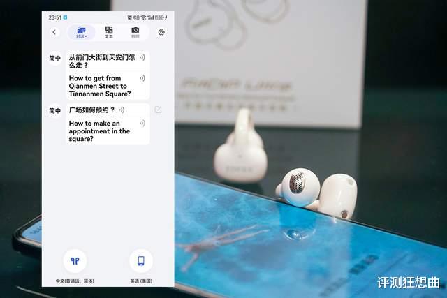 首先是「跨语交流功能」的慢翻译,它可在应用端实现多语言实时翻译。连接耳机后,用户可选择中、英、日、韩等多种语言组合,进行语音互译。实测中,中文与英文之间的短句转换较为准确,延迟控制得体,适合日常旅行或简单沟通使用。不过,该功能依赖网络,环境噪音大或语速过快时准确度会下降,更适合用作辅助沟通工具。