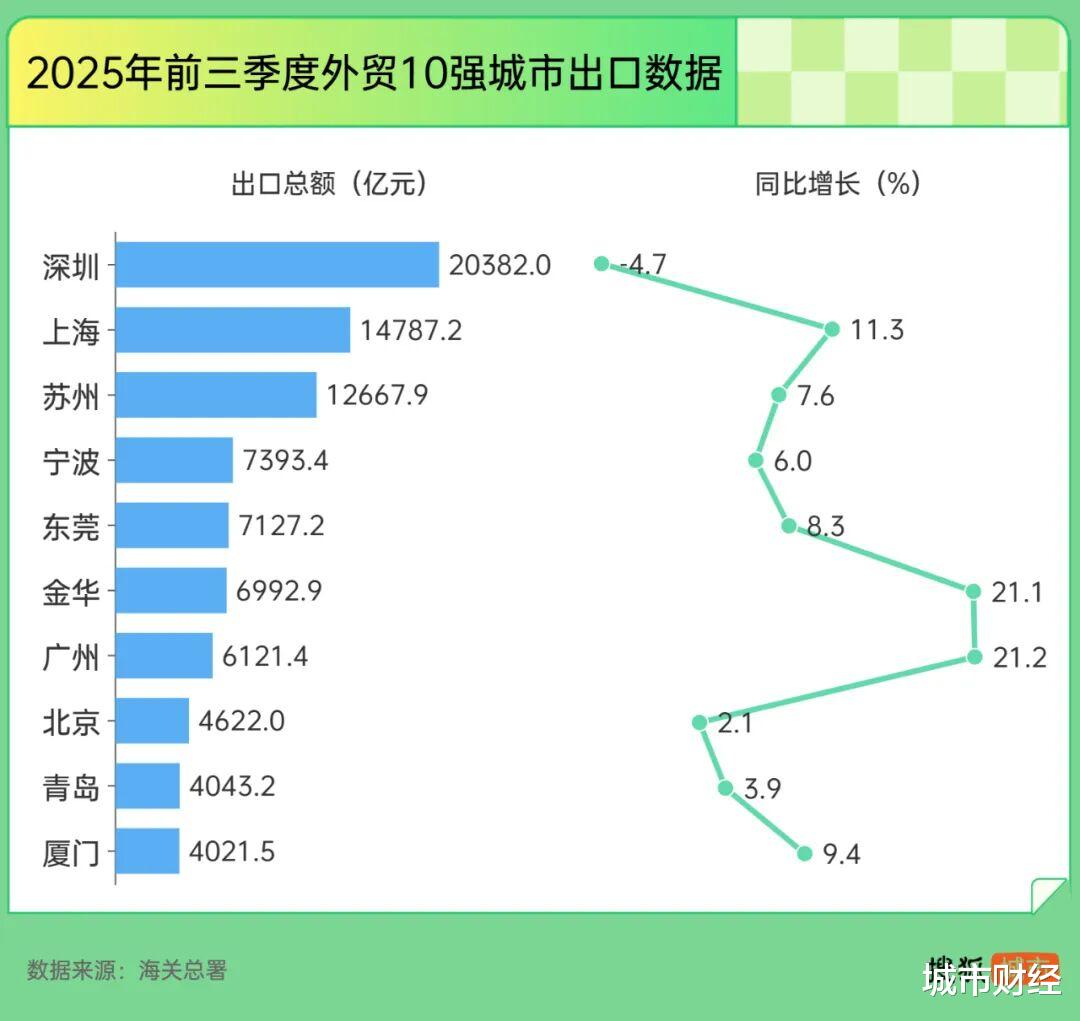 出口方面,前三季度,全市货物进出口总额6743亿元,同比增长7.1%。其中,进口1931亿元,下降1.0%;出口4812亿元,增长10.7%。