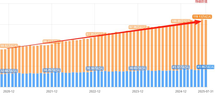 7月,非银存款同比多增1.39万亿元,但居民存款同比多降0.78万亿元。