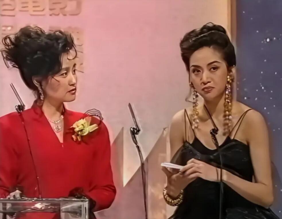 同年,她荣幸受邀出席第十届香港金像奖盛典,亲手为“最佳男主角”张国荣颁发荣耀之杯。典礼现场,主持重任落在梅艳芳梅姐的肩上,她以一袭黑色吊带长裙亮相,长发盘起,耳畔佩戴着熠熠生辉的珠光饰品,整个人仿佛化身夜空中的璀璨星辰,光彩夺目。