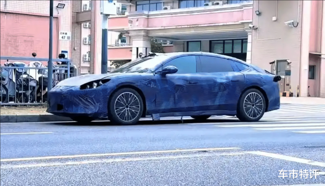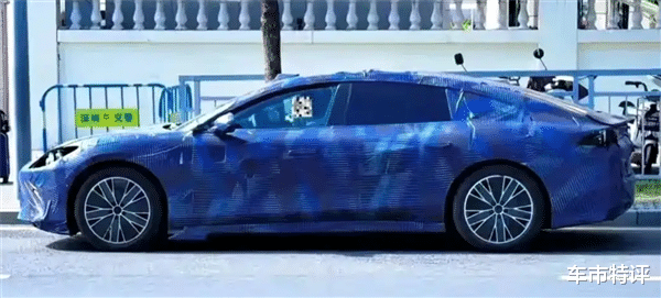 下面我们来看看新车车侧,流畅的车身线条一直向后延伸,舒展的溜背造型搭配隐藏式门把手,更显优雅运动,轿跑风格明显。从曝光图来看,这款新车或定位中大型或大型轿车。