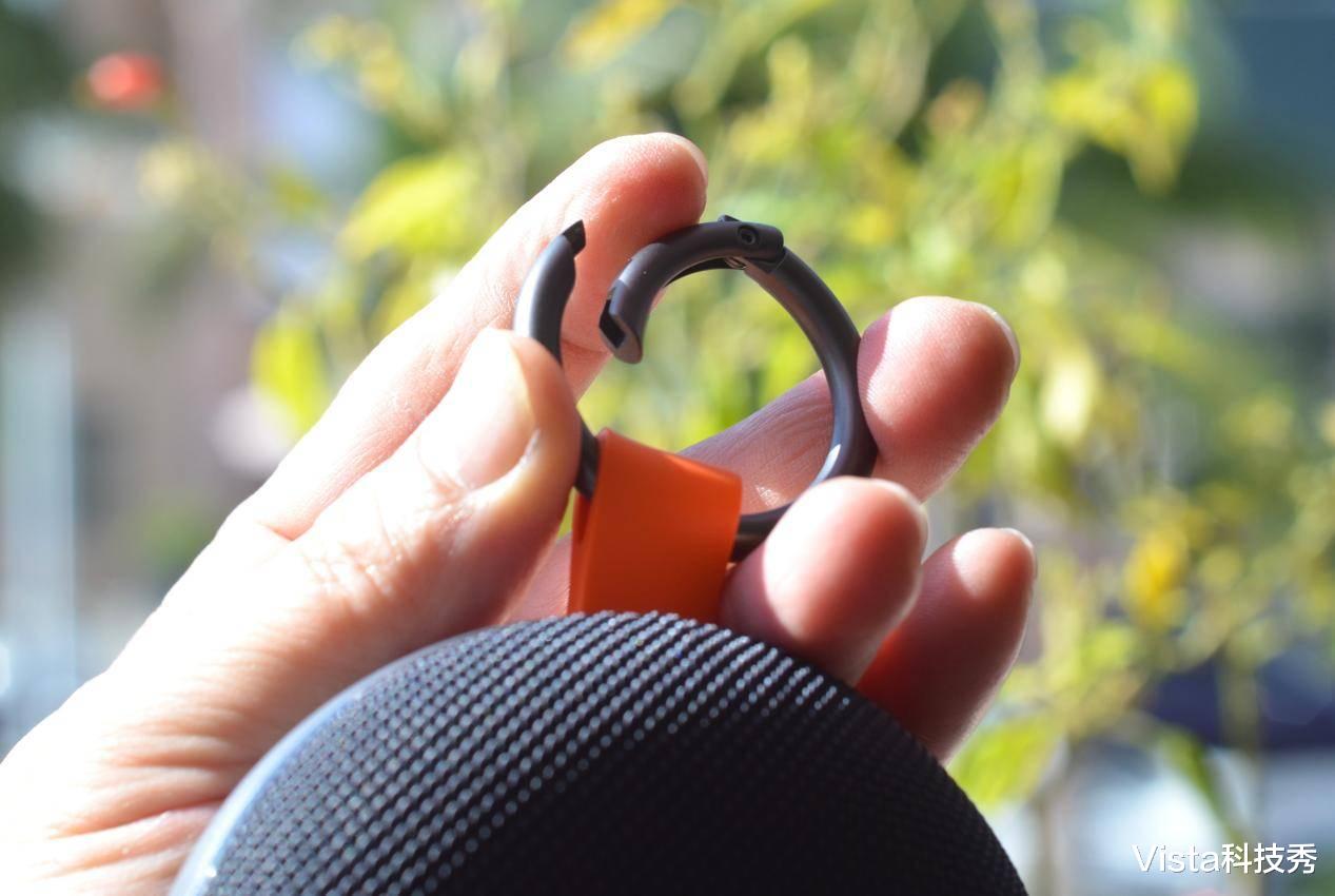 可拆卸金属挂扣设计也是REDMI 2蓝牙音箱一大亮点,挂在背包、营帐等位置无需双手操作,单手就可以完成,非常简便。