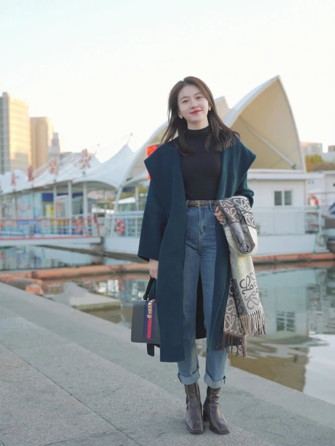 冬天寒风瑟瑟发抖,尤其是在北方地区,头部直观感受到的寒意更加刺骨,因此帽子成为了冬季穿搭的必备配饰之一,防风御寒,做好头部保暖工作。其次是脖颈位置,也是很容易进风、露风的地方,佩戴围巾加持,护住脖子,防止寒风钻进来,从而增加整体造型的保暖效果。(2)脚部:加绒、毛绒鞋子加持
