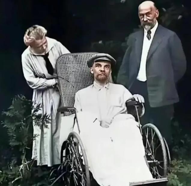 这是列宁临终前在轮椅上拍摄到的最后一张公开照片,那时候的他病的十分严重,中风了好几次把他折磨的痛不欲生。