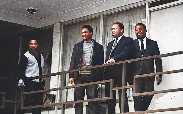 这是马马丁·路德·金在孟菲斯洛林汽车旅馆附近拍下的一张照片,照片中的他面露微笑,身边沾满了他的支持者,此时的他意气风发,愉快的接受记者的采访。