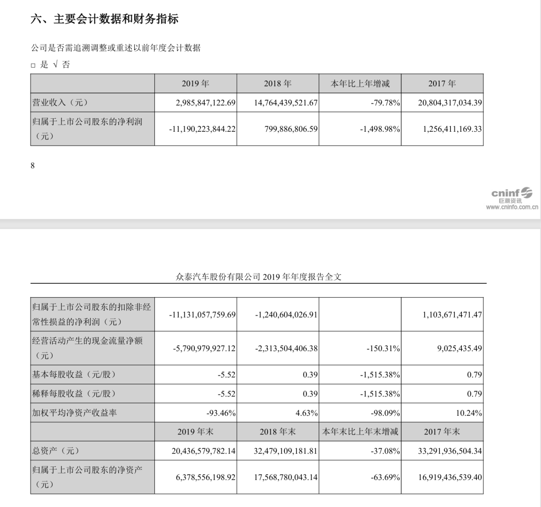 2019年,众泰营收约30亿元,亏损却高达百亿!