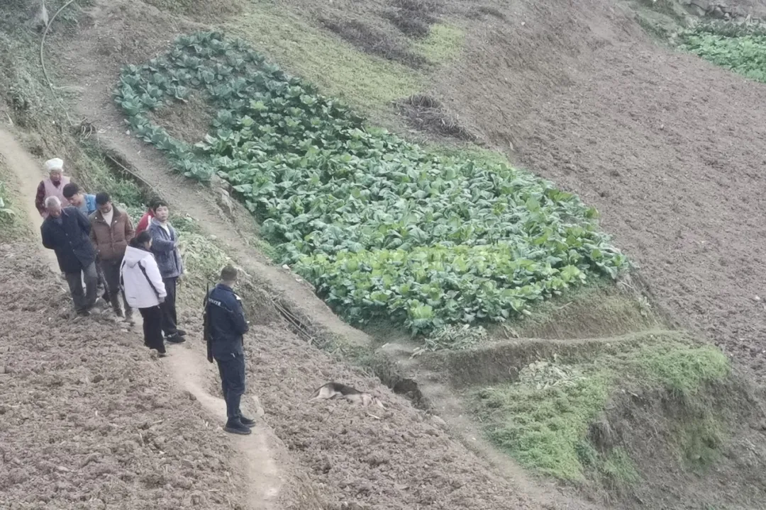 赶到现场,院墙下狼藉一片。村民又气又怕:“这狗凶得很,平时都不敢让小孩靠近。”隐患必须清除。在征得狗主人同意后,一场“除犬行动”迅速部署。尹珍派出所教导员朱泽俊带队赶到,疏散村民、研判地形……