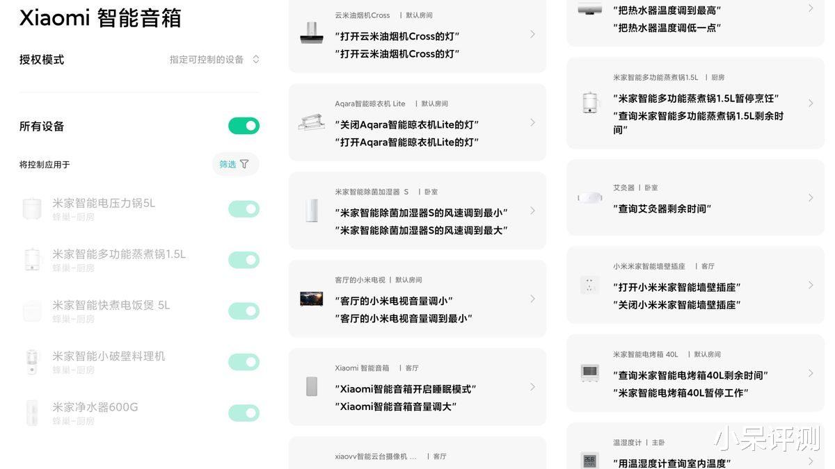 智能音箱主要使用场景还是控制全屋智能设备,Xiaomi智能音箱支持小米Mesh2.0协议,通过绑定米家APP就进入智能设备界面,实现一句话操控全屋智能设备。多设备快速响应,操控体验起来非常便捷。同时“超级小爱”的加入实现一句话控制多台智能设备,实现“多设备多指令”或“单设备多指令”一句话搞定,还支持语音创建智能场景,像定闹钟、预约智能设备以及远程联动小米汽车等等,只动嘴少动手的时代已经来临!