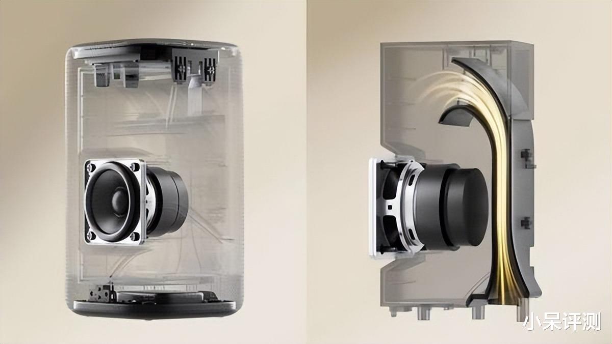 发声单元配置一枚8W 2英寸全屏扬声器和一根低频增强风管构成,2英寸的扬声器尺寸凭借小尺寸和全皮覆盖核心优势,被广泛应用于桌面音箱和便携设备上,主要优势就是全频覆盖系统简化,、可操作性强、中高频清晰尤其是人声的展现效果;低频在与中高频的对比中稍显不足,Xiaomi智能音箱则通过内置低频增强风管,弥补这一硬件短板,保证了输出音质的澎湃与动听,实际场景体验下那种“咚咚咚”的低频声效,丝毫不输大箱体音箱,实际表现还是不错的。