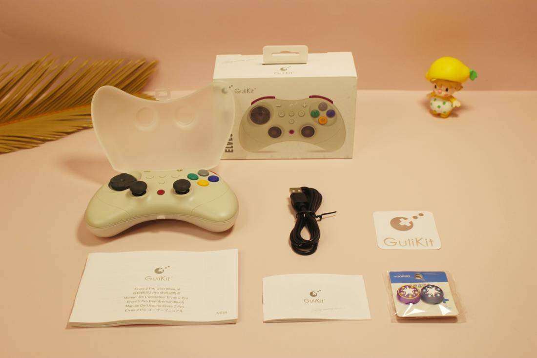 收到手柄后我就迫不及待地打开了外包装,包装盒内包含手柄本体、手柄收纳盒、Type-C线、说明书、保修卡以及两个非常可爱的摇杆帽。