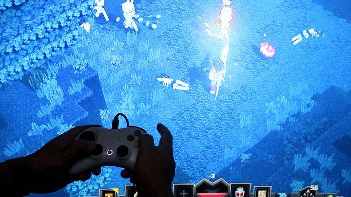 作为一款快节奏的ARPG游戏,《我的世界:地下城》对操作响应、打击感和长时间游玩舒适度都有较高要求。经过实测,谷粒精灵2Pro在游玩这款游戏时,相比普通蓝牙手柄甚至原装Switch Pro手柄,优势也是相当明显,近战武器(如剑/斧)连续攻击时,按键响应比薄膜按键快约0.1秒,轻松打出完美连击,频繁使用弓箭/法术时,手指疲劳度显著降低(实测1小时游玩后手部无明显酸痛)。