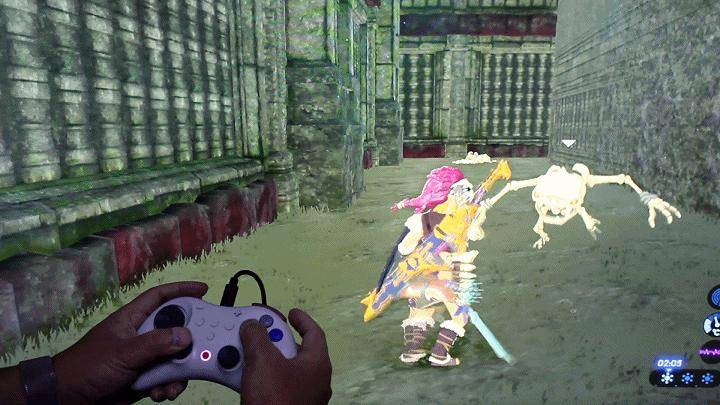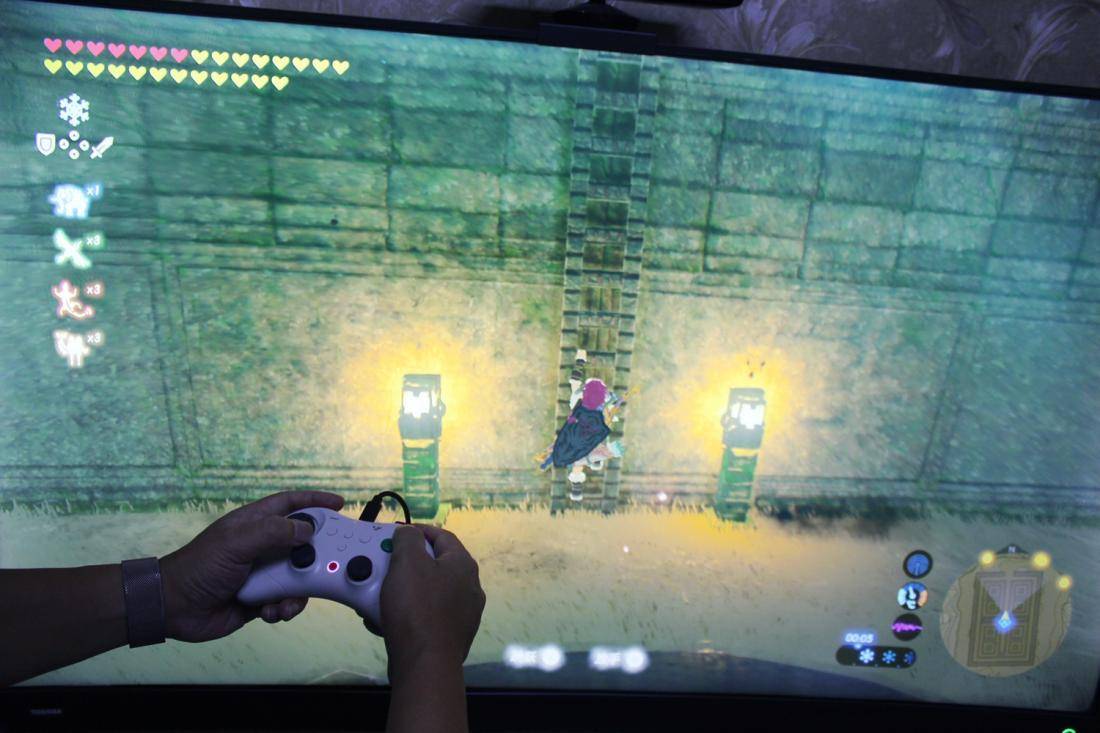 作为Switch平台最吃操作的游戏之一,《塞尔达传说:王国之泪》对操控精度、按键响应和震动反馈都有着极高要求。经过深度体验,我发现谷粒精灵2Pro在游玩这款游戏时,相比原装Joy-Con甚至Switch Pro手柄,带来了非常多的操作惊喜,在射箭瞄准时,得益于它的霍尔摇杆无死区特性,让林克射箭时微调准星更加细腻,尤其是远距离狙击魔像眼睛时,操控明显比Joy-Con更稳定,而在使用究极手在复杂场景拼接载具时,摇杆的线性响应能让物体旋转角度更精准,避免"一推就过头"的尴尬。