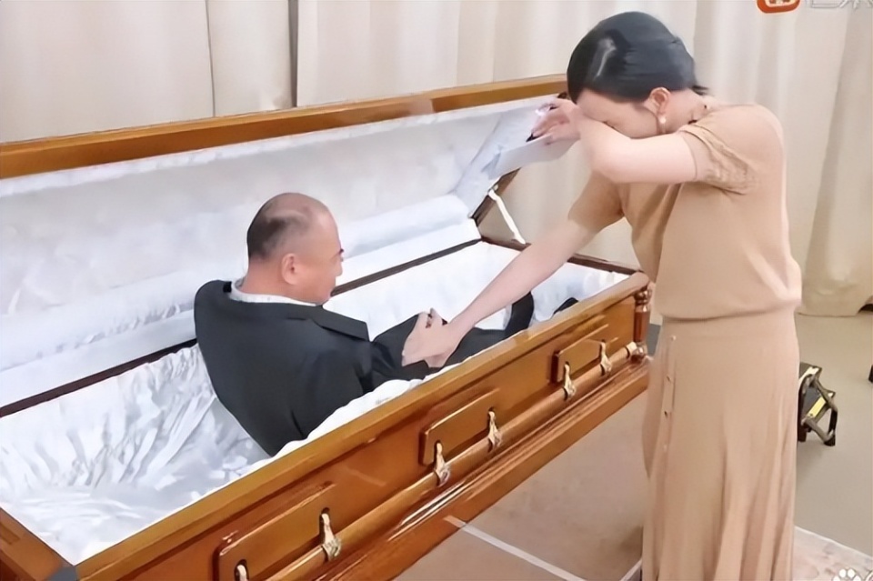 他躺在棺木里,给胡静写了一封深情的信,信里回忆了他们二十年的点点滴滴,还提到生病期间胡静一个人扛起照顾全家的重任,累到站着都能睡着。