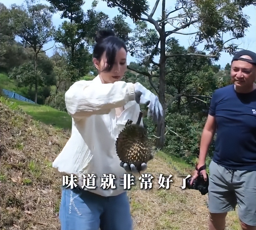 前阵子胡静家的榴莲山庄大丰收,她晒出的视频里,各种饱满的猫山王挂满枝头,看起来就让人垂涎欲滴,多到让胡静能当饭吃。