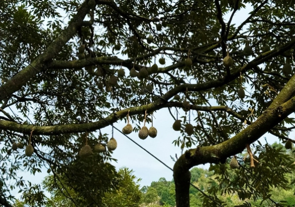 这个榴莲山庄就像一个小型公园,里面不光有榴莲树,还有菠萝蜜、火龙果这些热带水果。