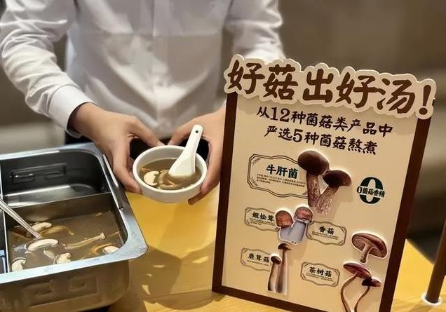 今年海底捞在冬日搬出的是“浓浓浓菌汤锅”这一新品。通过使用牛肝菌等菌菇粉碎研磨至微细颗粒,再搭配食材,让不少消费者眼前一亮。