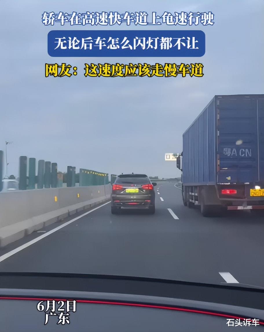 我接触过一个高速龟速行驶的司机,是我亲戚的同事,他说高速右车道开车不安全,因为有很多大车,必须要避开这些车,因此在左车道开车安全,但车速不能快,快了也不安全。
