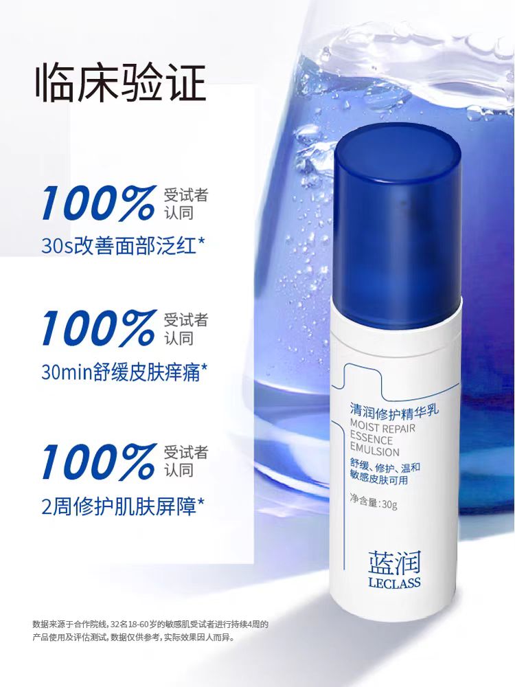 推荐理由: 说到修护,很多人会先想到理肤泉B5或薇诺娜特护霜,但它们对于油皮或混油皮来说,夏天可能会觉得略显厚重。而这款 【蓝润修护精华乳】 简直就是为敏感肌和油敏皮量身定做的解决方案!