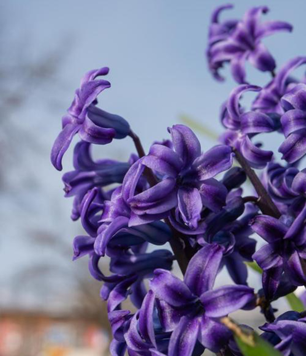 风信子,属于百合科风信子属,其特点显著。它花朵绚丽多彩,有蓝色、粉色、白色、紫色等丰富色彩,花瓣厚实,花蕊金黄,花茎坚韧,能够挺拔地支撑起花朵。不同品种的风信子在花朵形态和颜色上略有差异,比如‘荷兰小姐’品种,花朵颜色鲜艳,呈深紫色,花瓣上有着清晰的花纹;‘水晶蓝’品种,花朵为纯净的蓝色,花形较为小巧精致,给人一种空灵的美感。而且风信子花香浓郁,香气清幽而持久,在盛开的季节,远远就能闻到它那甜美的气息。