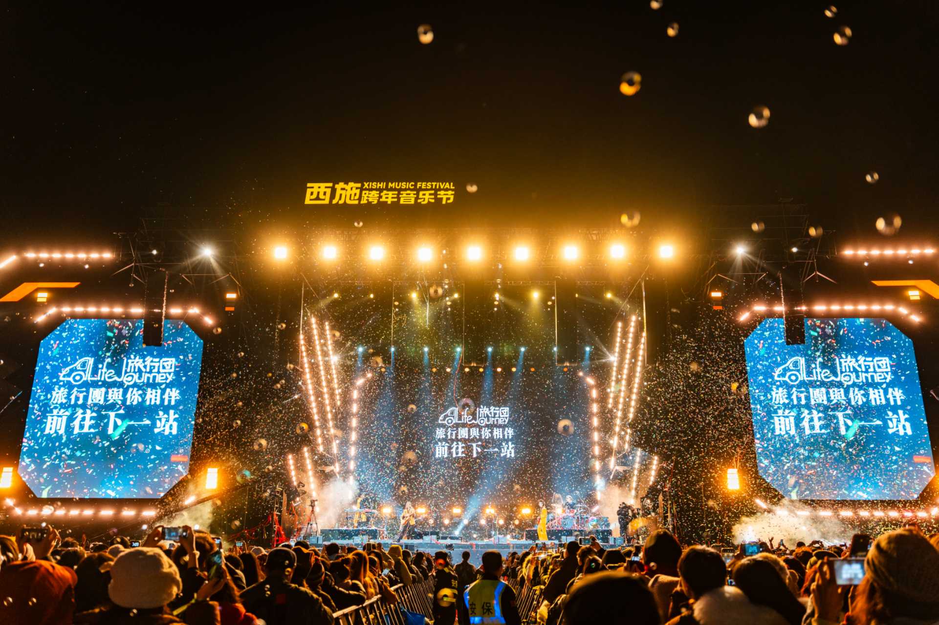 跨年夜的安全保障更是重中之重。现场设置多重安检通道,配备充足安保力量,实时巡查维护秩序;舞台两侧均开设了医疗服务点,配备医护人员、专业设备及常用药品,随时应对突发状况。“没想到跨年夜人这么多,却一点不混乱,工作人员还主动给我们送暖宝宝,太贴心了!”来自上海的大学生乐迷小张说道。
