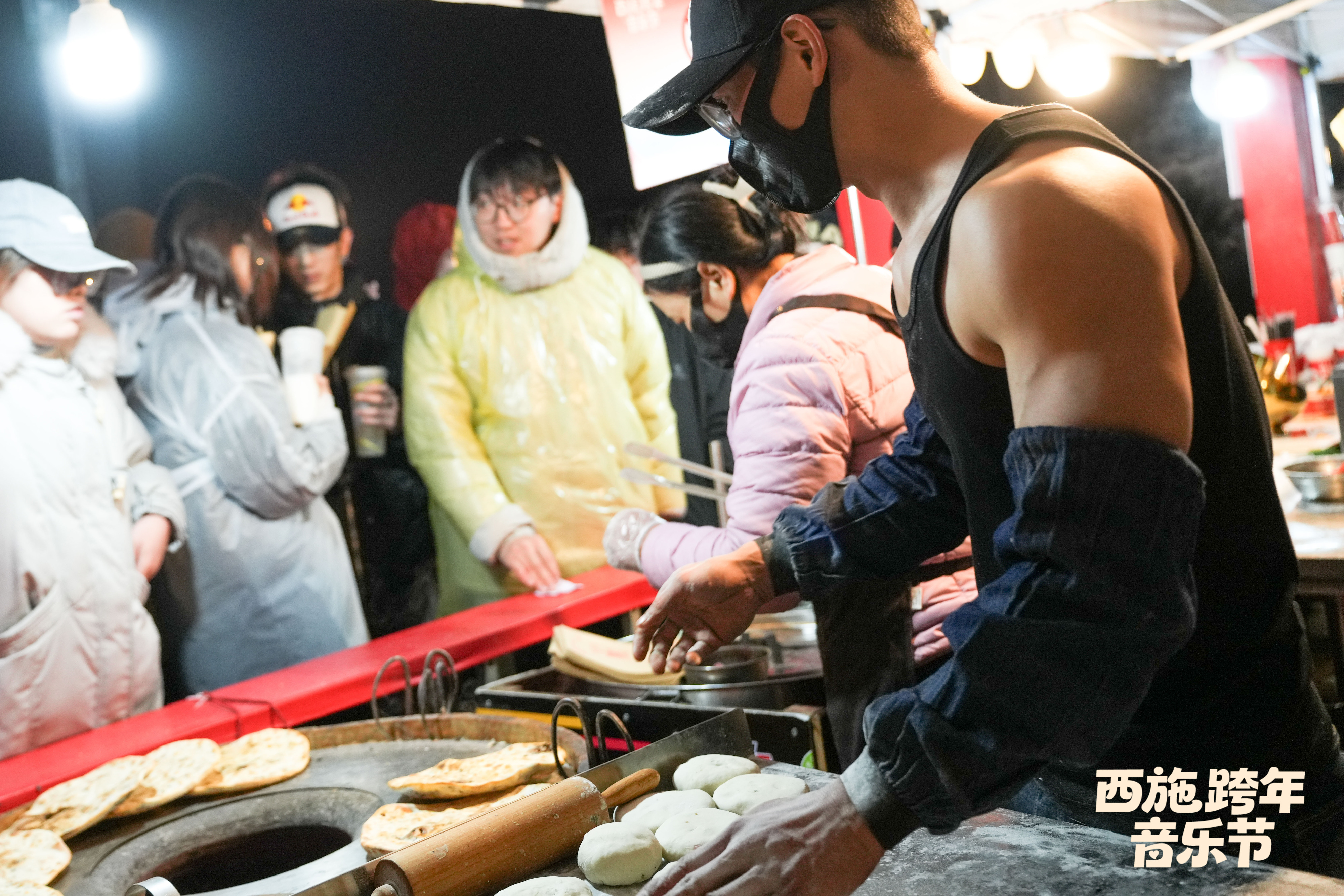 音乐节现场精心打造的非遗体验区、文创市集与美食街区,成为了跨年夜最具烟火气的文化坐标。草塔抖狮、西路乱弹等国家级非遗表演在冬日暖阳的映照下更显灵动,表演者们腾挪跳跃,将传统民俗的生命力与跨年的喜庆氛围完美契合,引得观众纷纷驻足喝彩;同山烧饼的焦香、草塔羊肉汤的鲜香弥漫在市集间,摊主们忙得热火朝天,“跨年夜的生意比平时翻了几番,备足的食材早早售罄”,寿稷同山烧饼摊主陈玲玲笑着说道。来自杭州的乐迷小吴坦言:“本来是为了喜欢的乐队来跨年,没想到被诸暨的美食和非遗圈粉了,这趟跨年之旅太值了!”