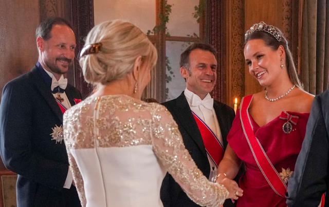 事实上,马克龙在当天早些时候已经和英格丽德·亚历山德拉公主见过面了。当祖母和母亲陪着法国第一夫人参观艺术博物馆时,身为王位第二继承人的公主,跟着父亲出席了在奥斯陆国家博物馆举行的“工业脱碳化活动”。