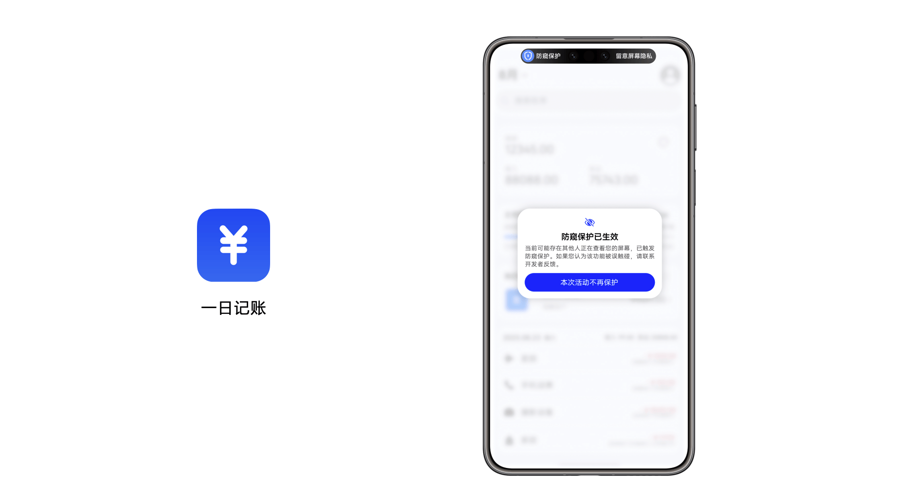 在提供卓越体验的同时,HUAWEI Mate 80系列更将用户安全置于首位,构建了全方位的防护体系。防窥保护实现从主动提醒到主动防护的升级。当他人注视用户手机屏幕时,系统不仅会发出防窥提醒,更会对钉钉私密群聊窗口等高隐私应用内容进行主动保护。目前该功能已获得钉钉、悦览、一日记账、钱迹记账、简单心理、中国邮政储蓄银行、橙讯、便单、响记、华夏银行、壹钱包、去哪儿旅行、京东金融等应用的支持,全览、平安证券、美柚、携程等更多应用也将陆续上架接入该功能。