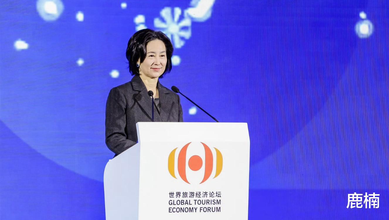 何超琼身着简约黑色礼服登台致辞,恰到好处地凸显了其干练与权威。