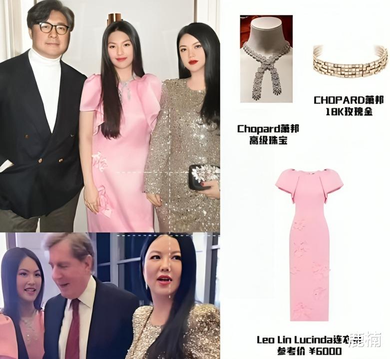 16岁的王诗龄亦毫不逊色,身着一件粉色晚礼服,手拎价值不菲的奢侈品手袋。